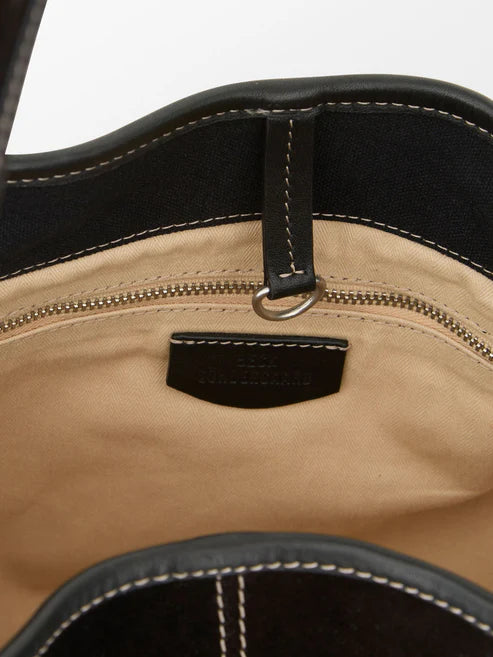 Flot ruskindstaske fra Beck Söndergaard i 100% koskind med dekorative hvide sømme. Tasken er stor nok til at rumme en 13" bærbar computer.