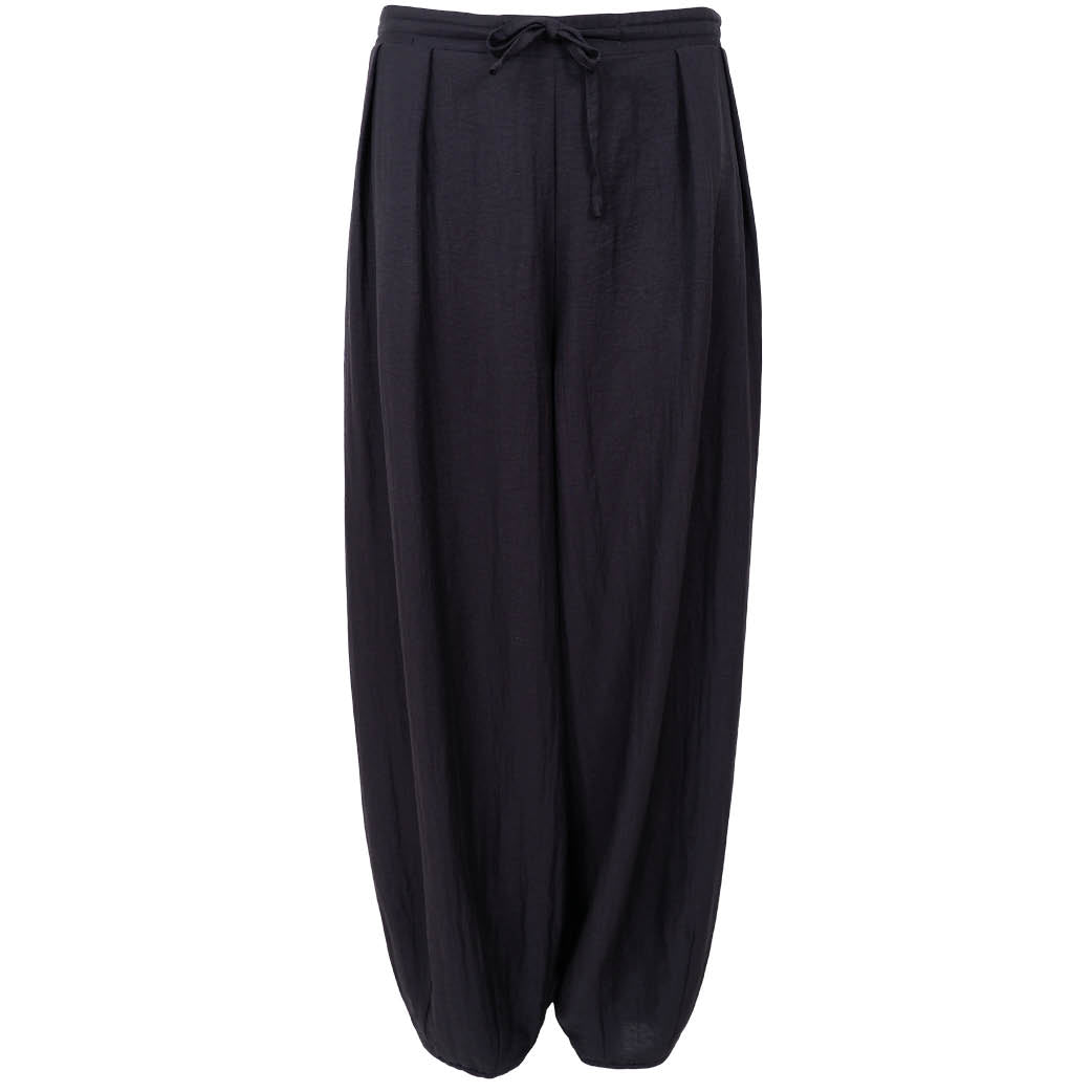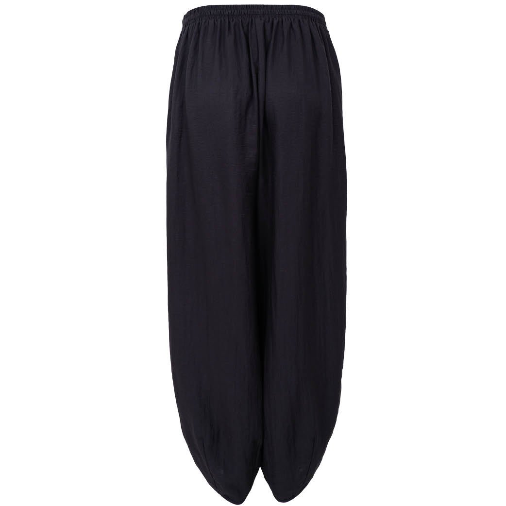 Flotte løse ballonbukser fra Black Colour med bindebånd i taljen, læg foran og elastik i taljen bagpå. Lavet i et behageligt materiale.