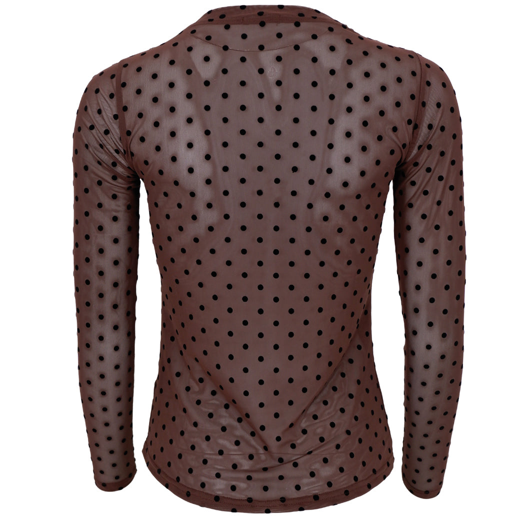 Flot tætsiddende meshbluse med prikker fra Black Colour. Perfekt til både hverdag og fest.