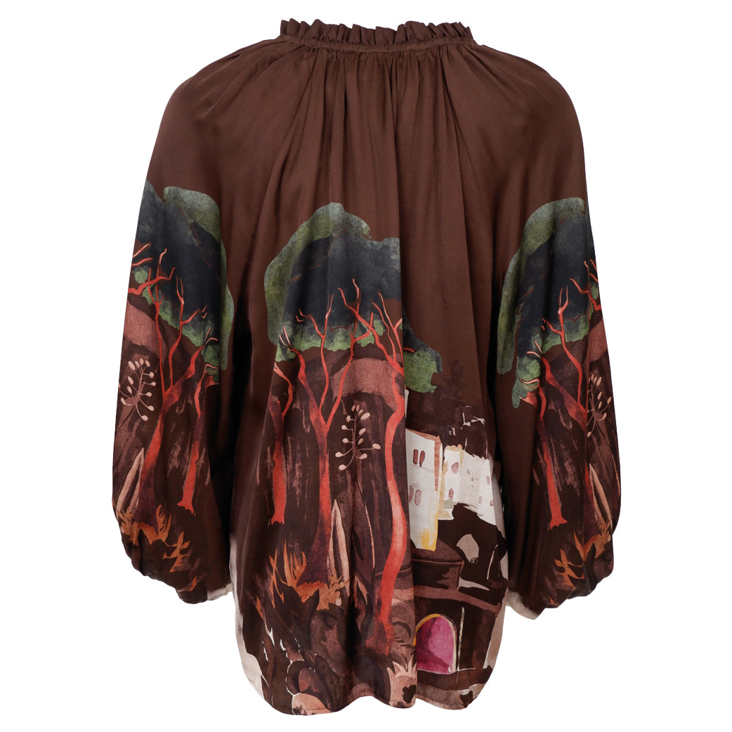 Smuk boheme-bluse fra Black Colour med flot print, lange ærmer og v-udskæring.