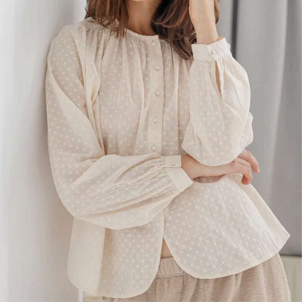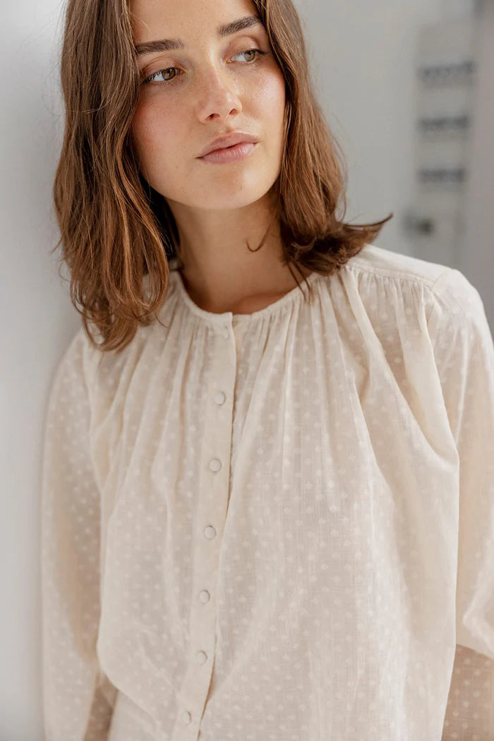 Smuk skjorte fra Project AJ117 med fin prikket struktur og små stofknapper.