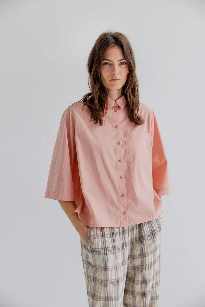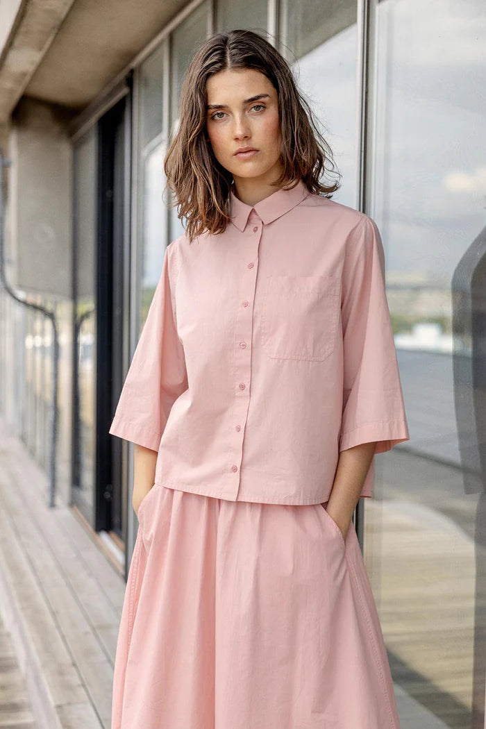 Klassisk a-formet skjorte fra Project Aj117 med brede trekvartlange ærmer. Med brystlomme og klassisk krave. Stilfuld og tidsløs.