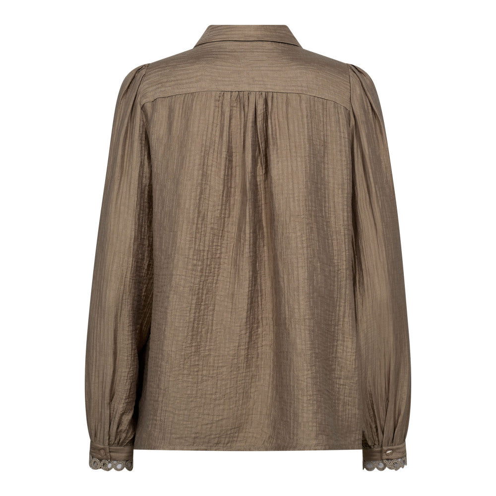 Flot og elegant skjorte fra Co'couture med krave, skjult knaplukning og fine blondedetaljer.