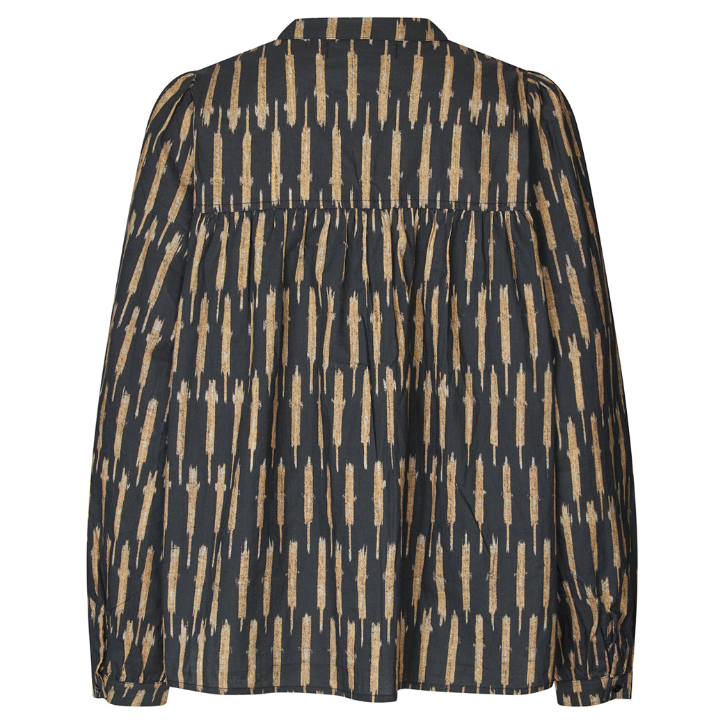 Super fin skjorte fra Lollys Laundry med grafisk print. Med fine rynkedetaljer foran og bagpå, samt med kinakrave. Løs pasform.