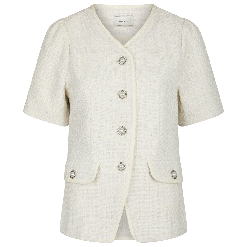 Klassisk boucle-bluse fra Neo Noir med korte ærmer og smukke knapper hele vejen ned. Perfekt til både hverdag og fest.