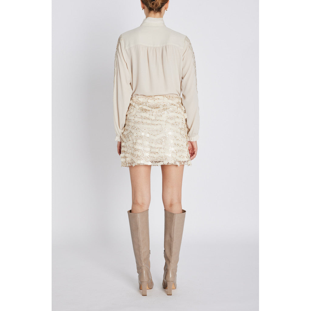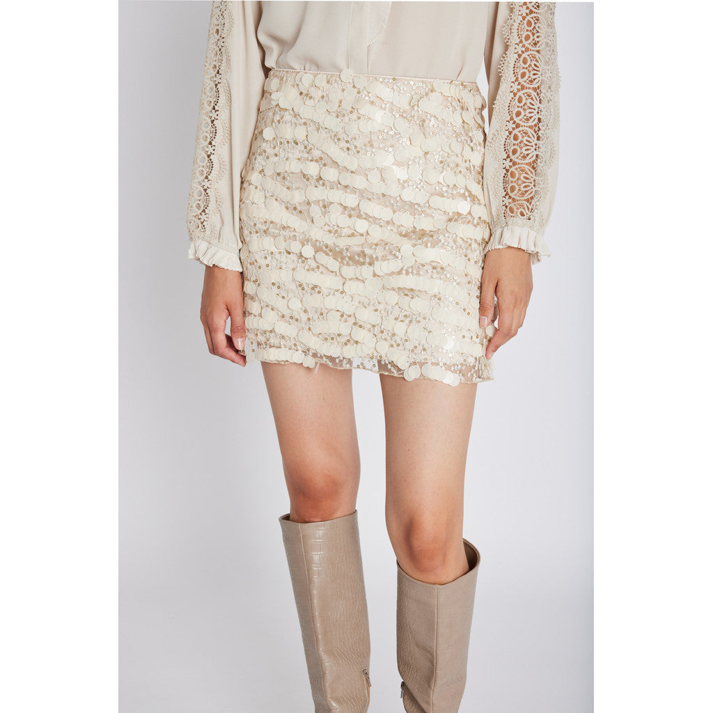 Smuk kort nederdel fra Bruuns Bazaar med flotte skinnende palietter i forskellige størrelser. Perfekt til både hverdag og fest.