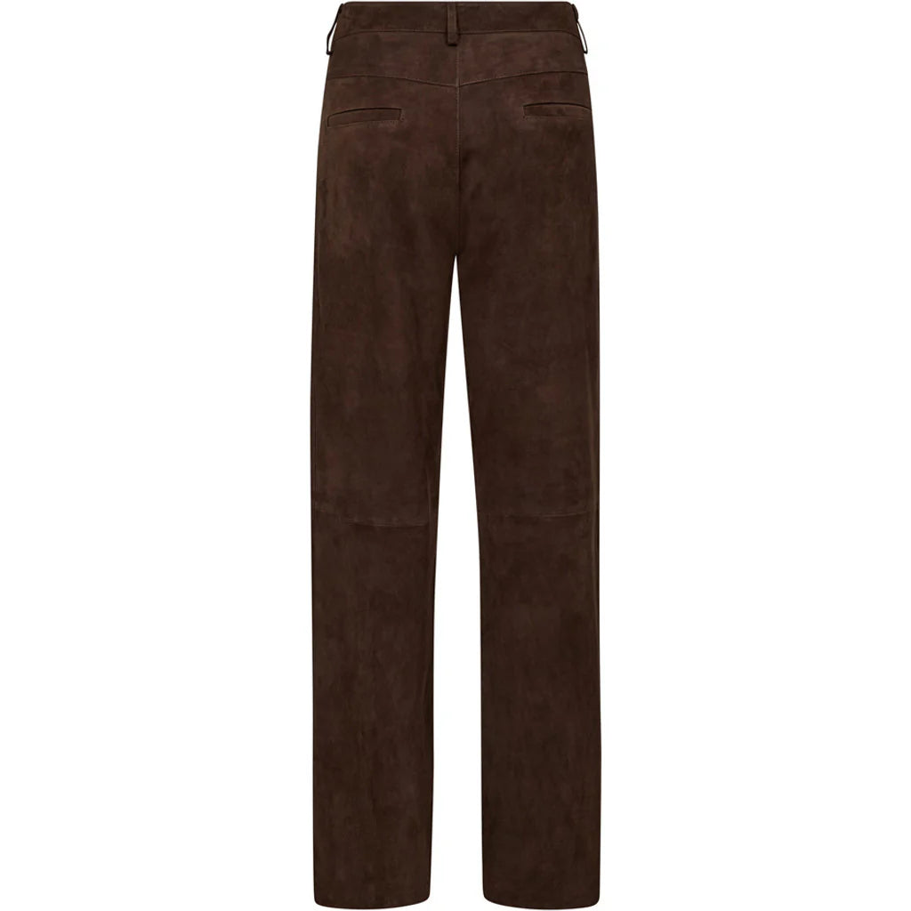 Lækre mørkebrune ruskindsbukser fra Depeche lavet i en blød og eksklusiv kvalitet. Bukserne har lige ben, fuld benlængde, mellemhøj talje og lommer i siderne. Perfekte både til hverdag og fest.