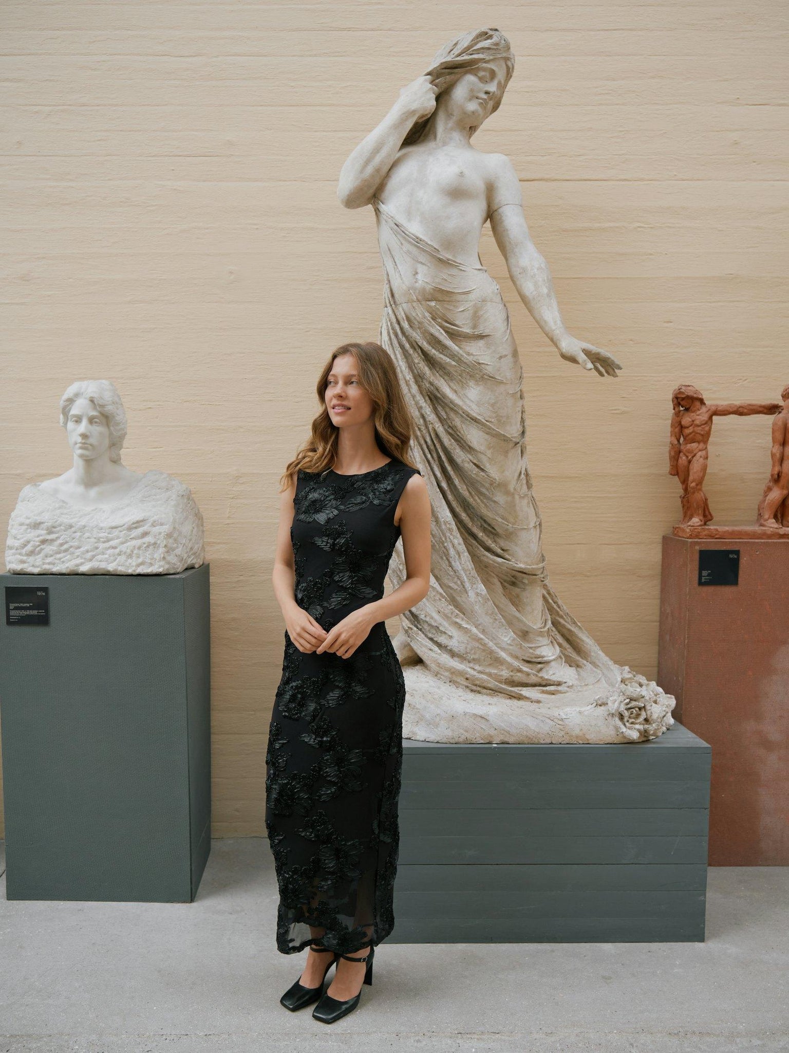 Smuk og elegant ærmeløs kjole fra Neo Noir med fine påsyede blomster.