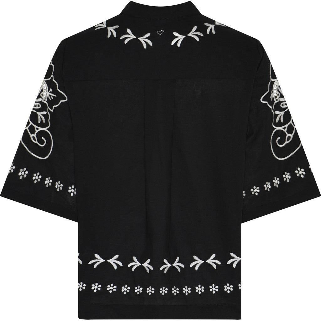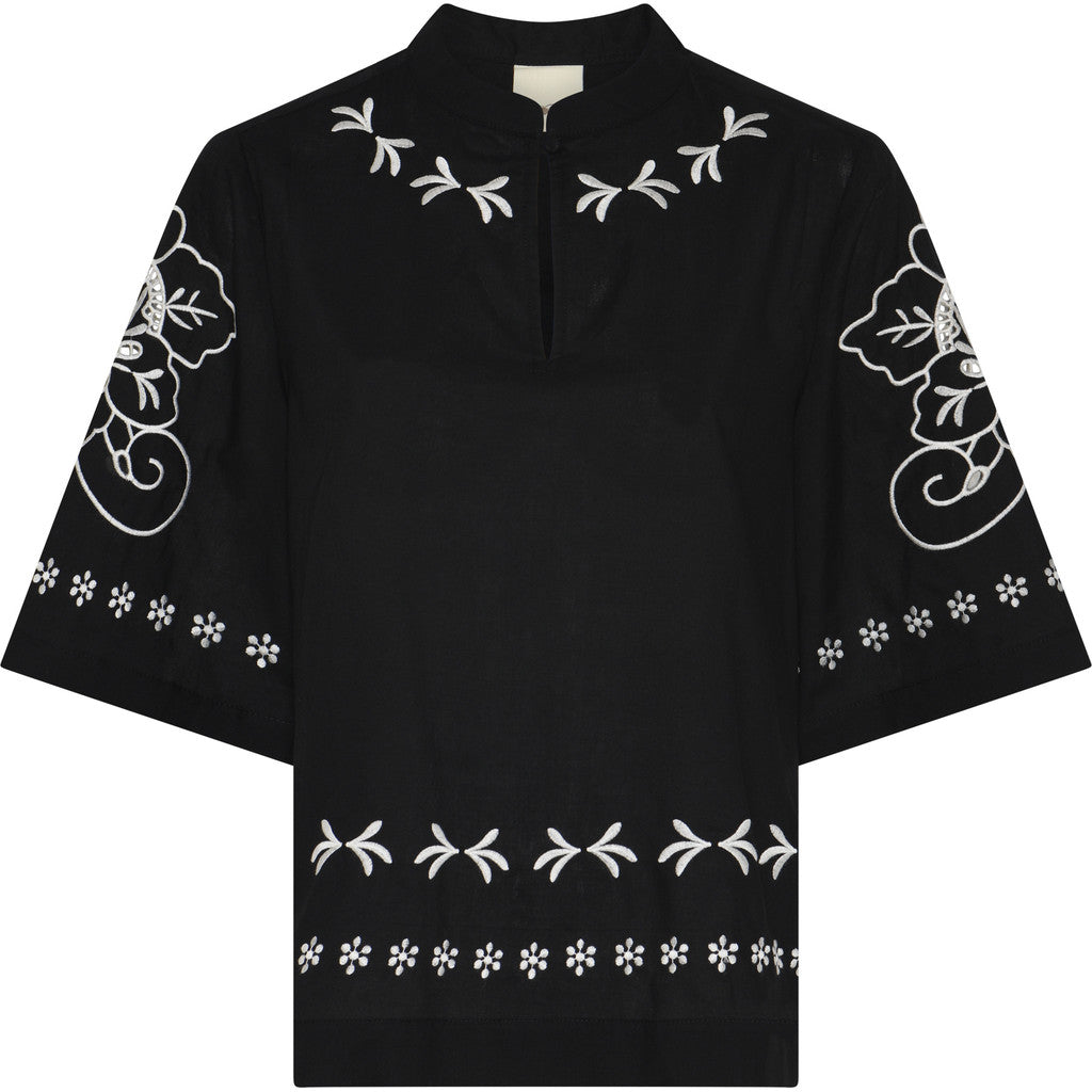 Smuk bluse fra Heartmade med fine broderinger og korte brede ærmer.