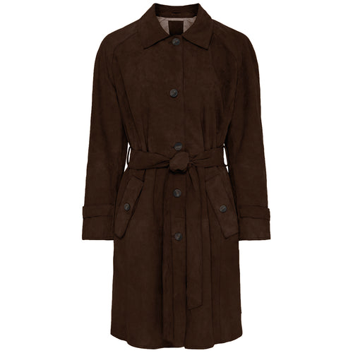 NOTYZ 11285 Suede Trenchcoat Chocolate Brown