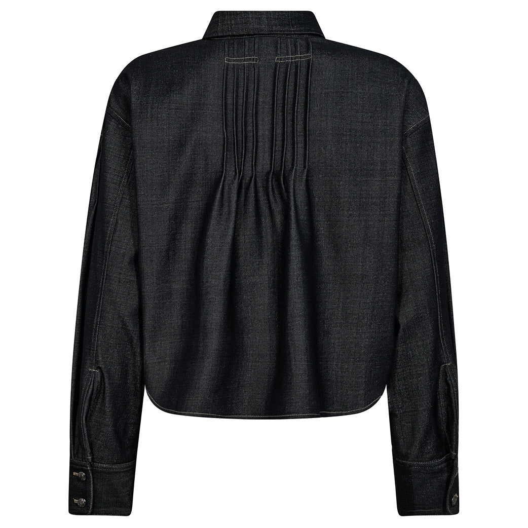 Cool mørk denimskjorte fra Mos Mosh med knaplukning og krave. Style med den matchende nederdel.