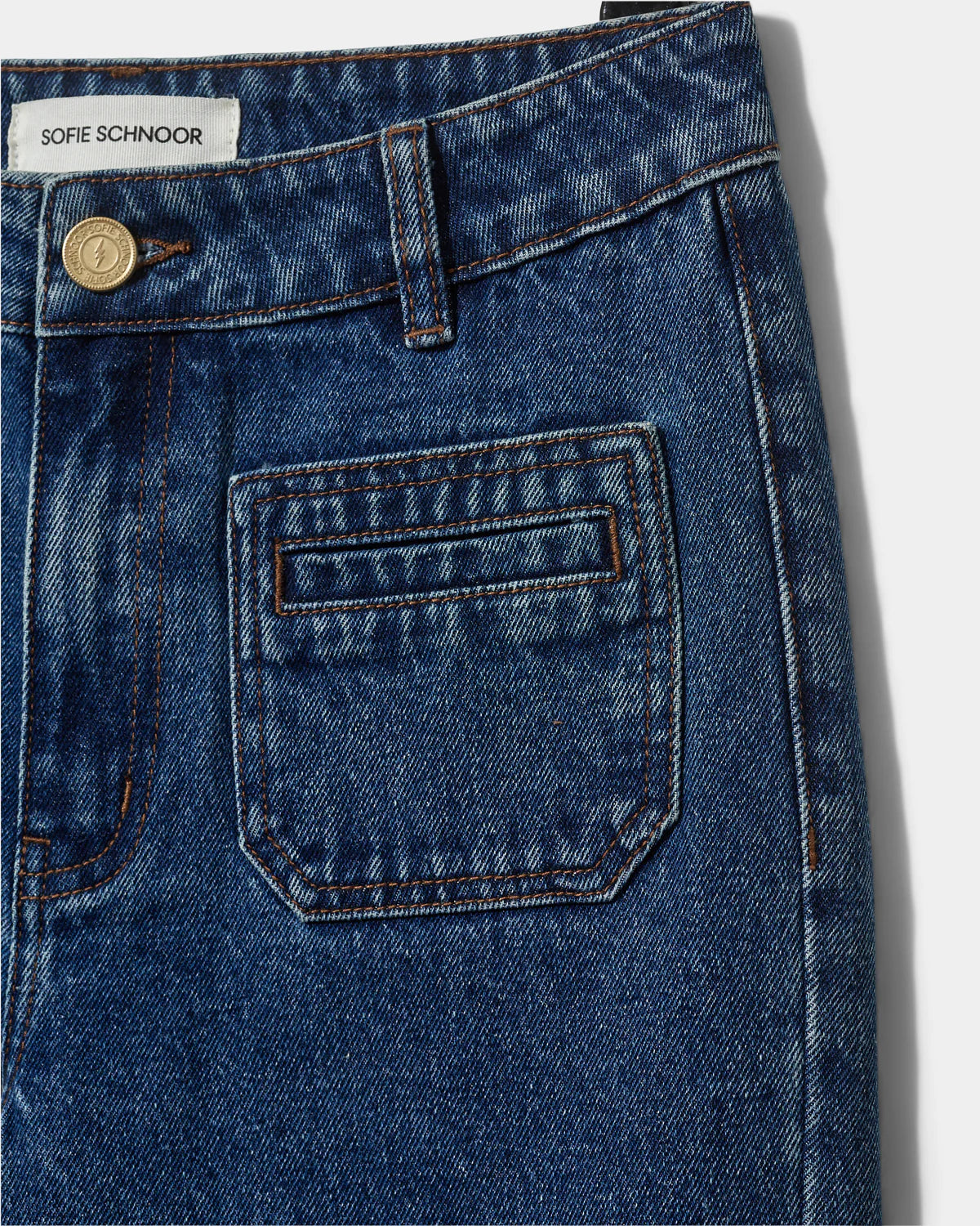 Cool blå jeans fra Sofie Schnoor med brede ben, høj talje og cool små lommer.
