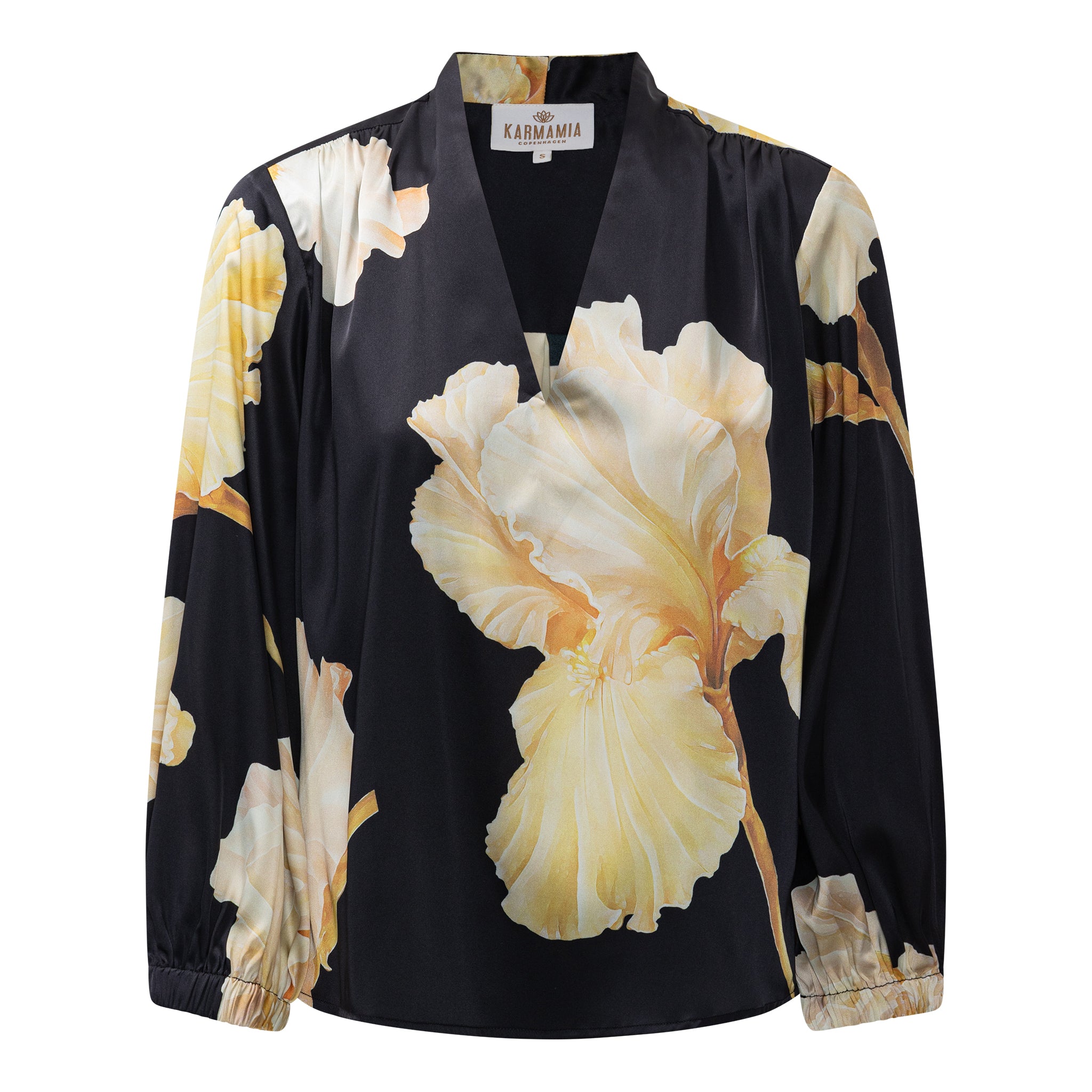 Super smuk bluse fra Karmamia i semi rig satin med v-udskæring og blomsterprint. Perfekt både til hverdag og fest.