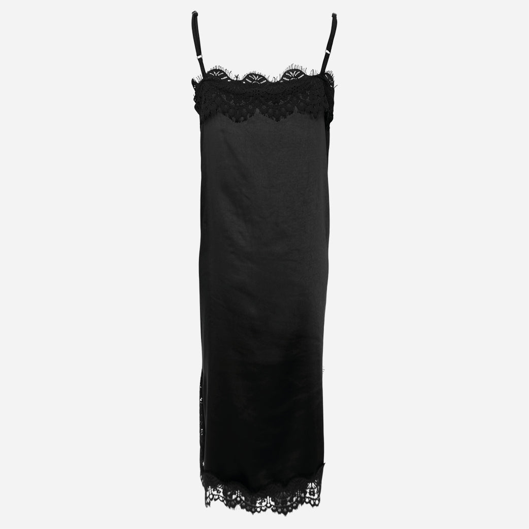 Flot satinkjole med tynde stropper og blondekanter fra Black Colour.