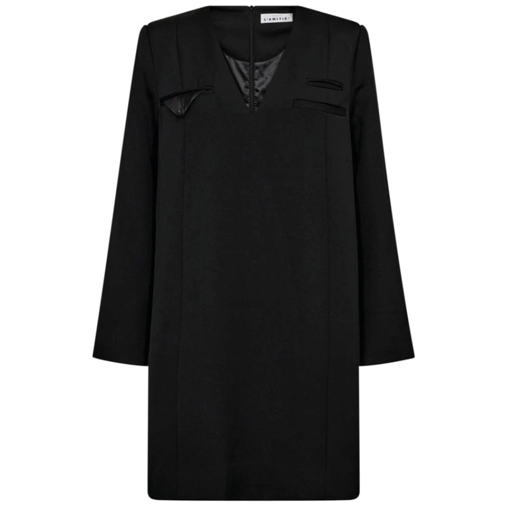Flot og elegant kjole fra Haute L'amitie med v-udskæring og fine lommedetaljer på brystet. Perfekt til både hverdag og fest.