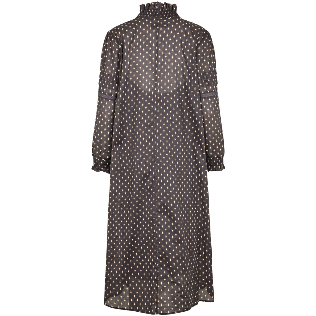 Skøn maxikjole fra Lollys Laundry med v-udskæring, flæser og prikker. Kjolen er meget blød og komfortabel.