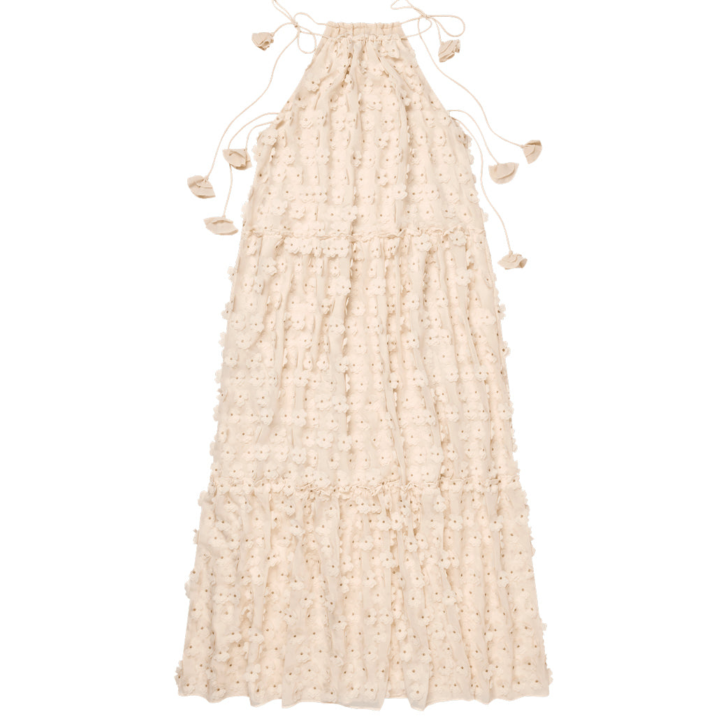 Super smuk maxikjole fra Munte med fine bindebåndsdetaljer og påsatte blomster.