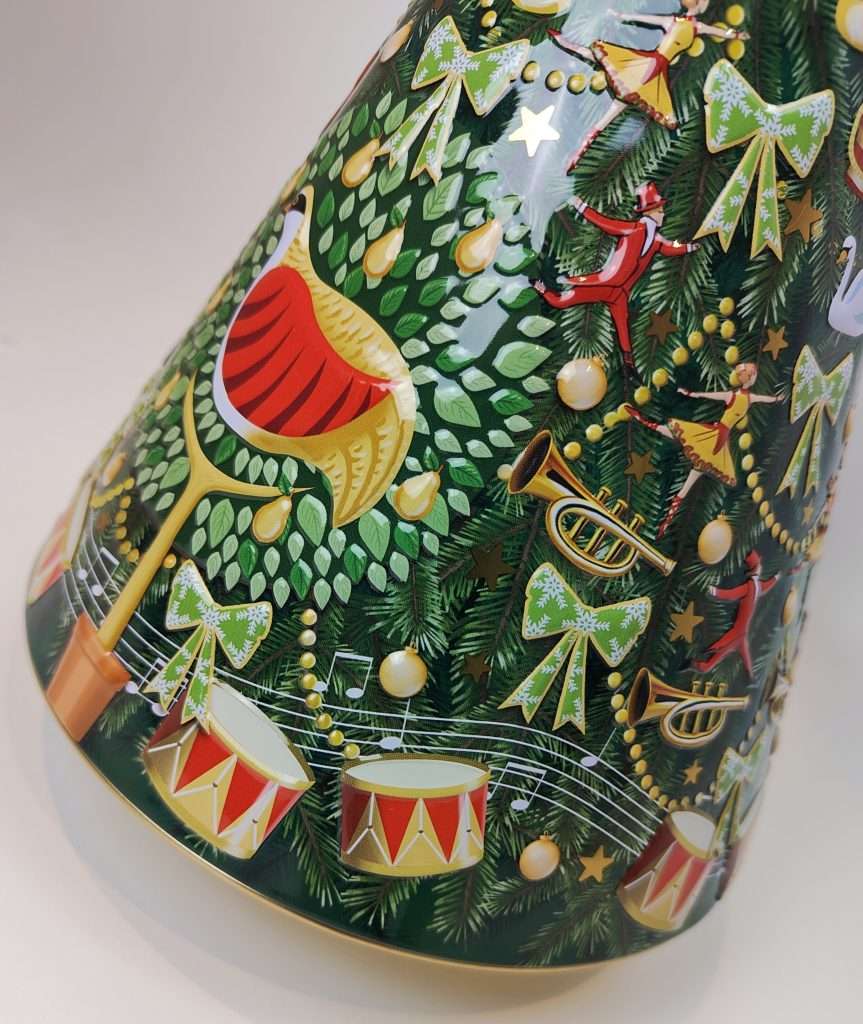 Flot juletræskagedåse med musik.
