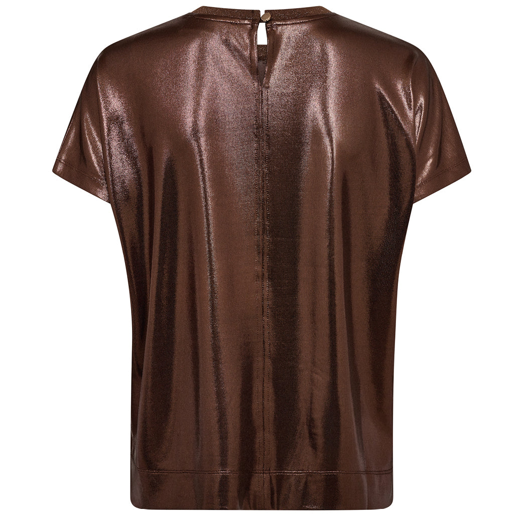 Cool-mettalic t-shirt fra Mos Mosh med rund halsudskæring og lukning i nakken.