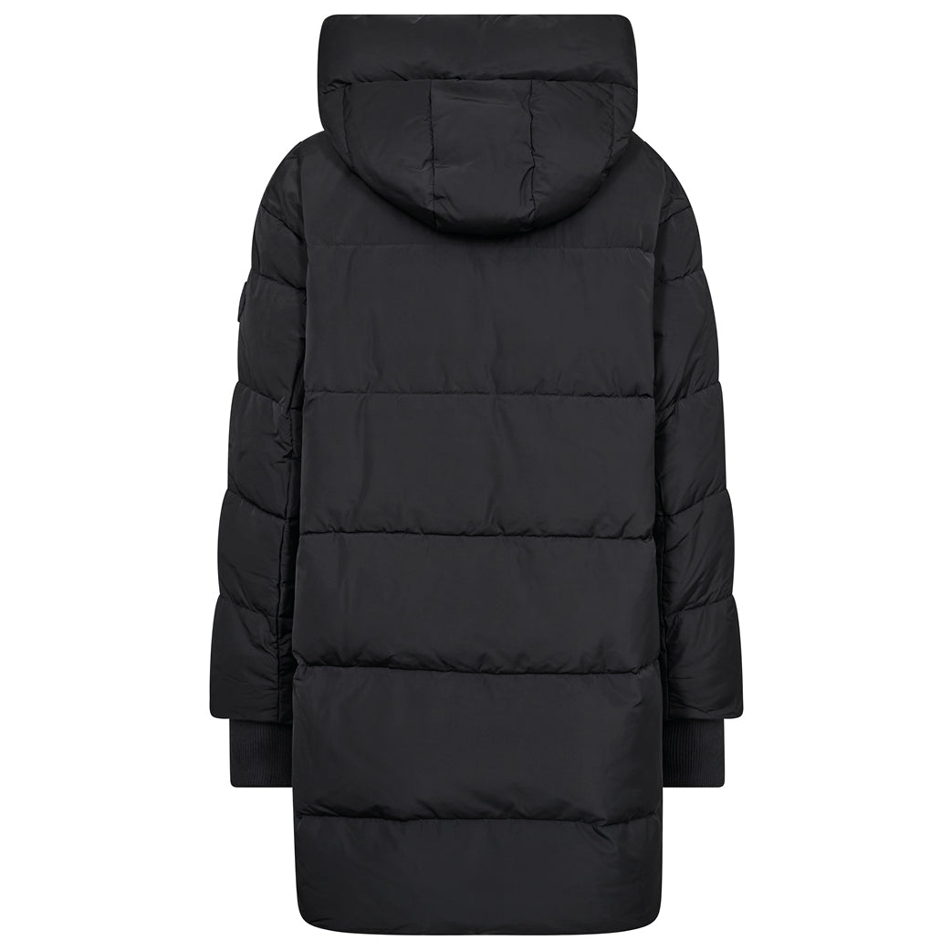 Lækker lang varm vinterjakke fra Mos Mosh. Jakken er en blød dunjakke med ternede paneler, krave, snøreluk og en stor hætte. Den lukkes med en lynlås, som kan åbnes fra begge ender. Fås i flere farver.