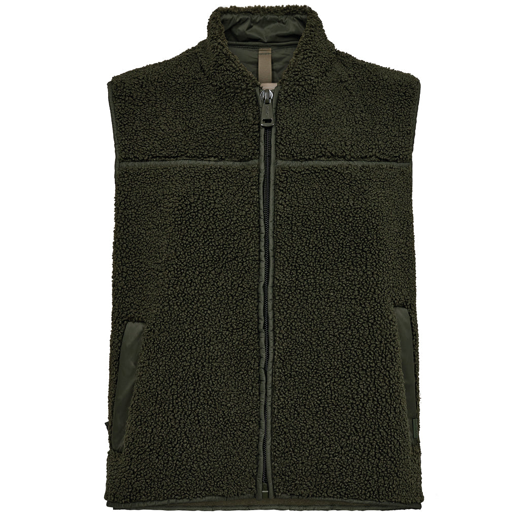 Populær lækker teddyvest fra Mos Mosh med høj hals, sidelommer og lynlåslukning. Designet i et behageligt materiale.