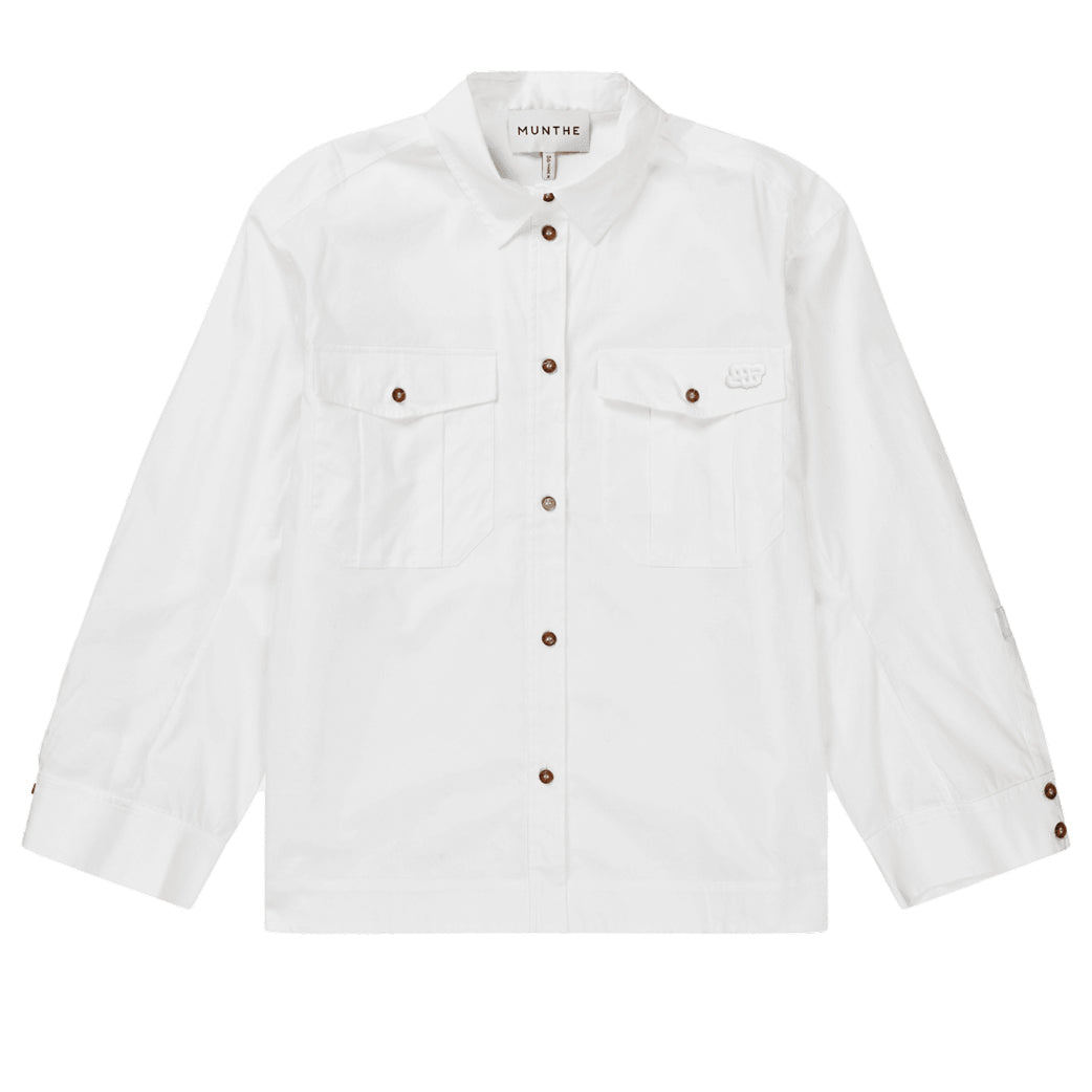Flot skjorte fra Munthe med kontrastknapper designet med flaplommer og et fint MUNTHE-emblem broderet på den ene brystlomme.