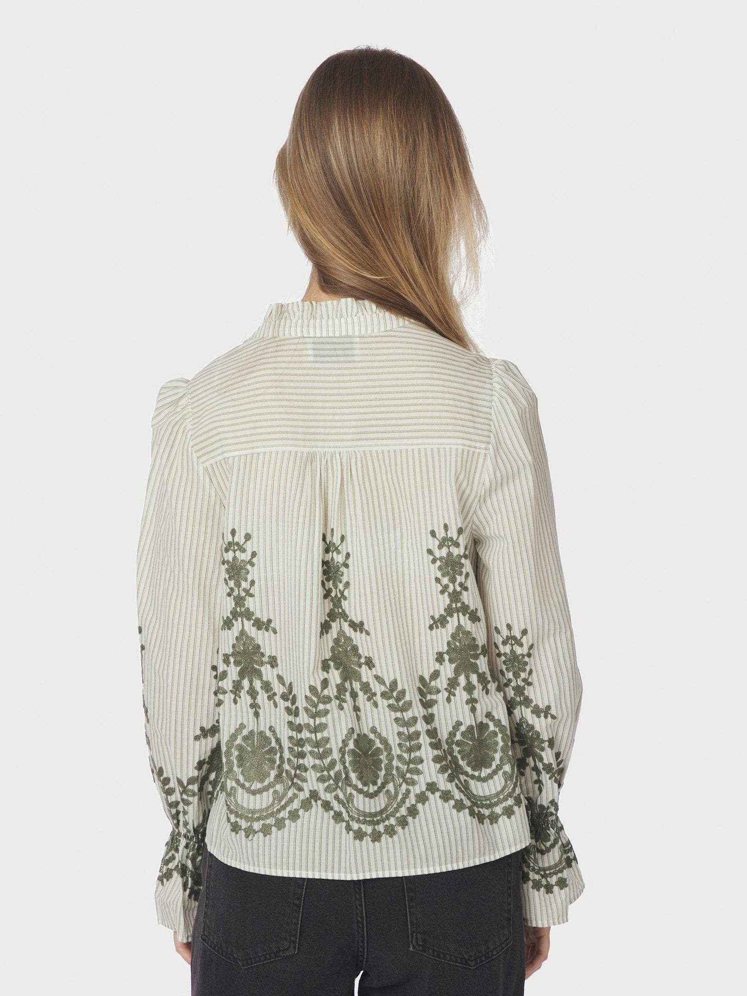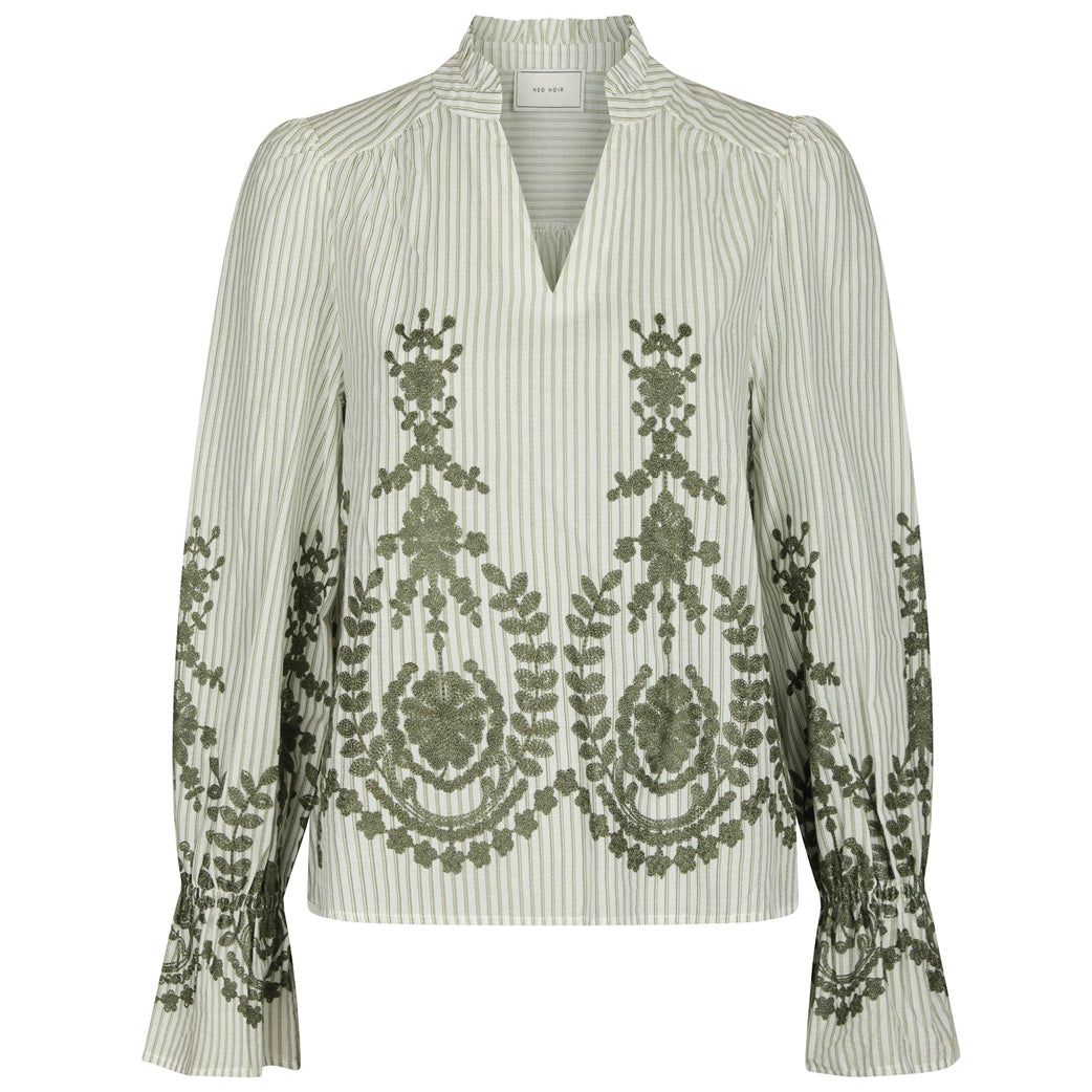 Elegant bluse fra Neo Noir med print, lange ærmer med manchetter med smock og lille v-udskæring. Perfekt til både hverdag og fest.