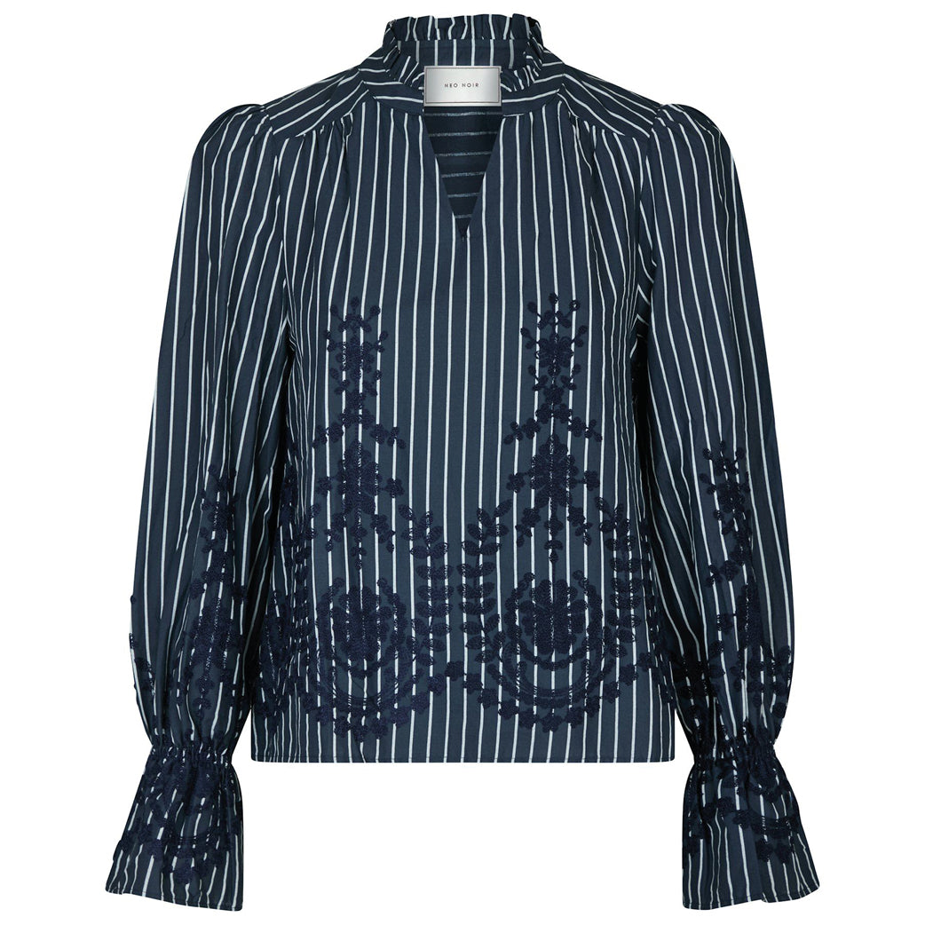 Elegant bluse fra Neo Noir med print, lange ærmer med manchetter med smock og lille v-udskæring. Perfekt til både hverdag og fest.