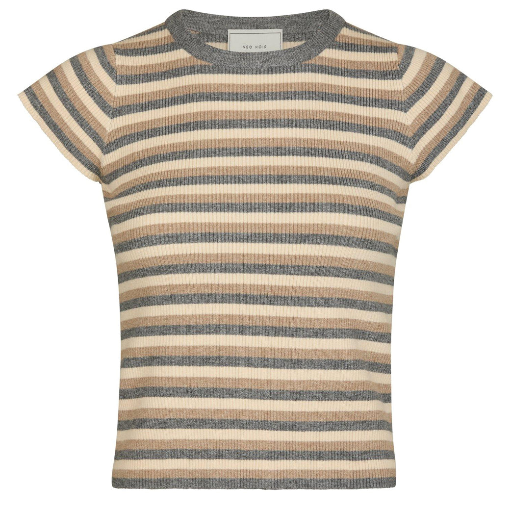 Fin strikket stribet t-shirt fra Neo Noir lavet i en blød kvalitet. Modellen er iklædt en str. 36.