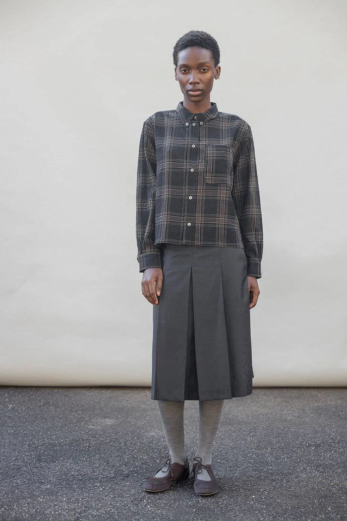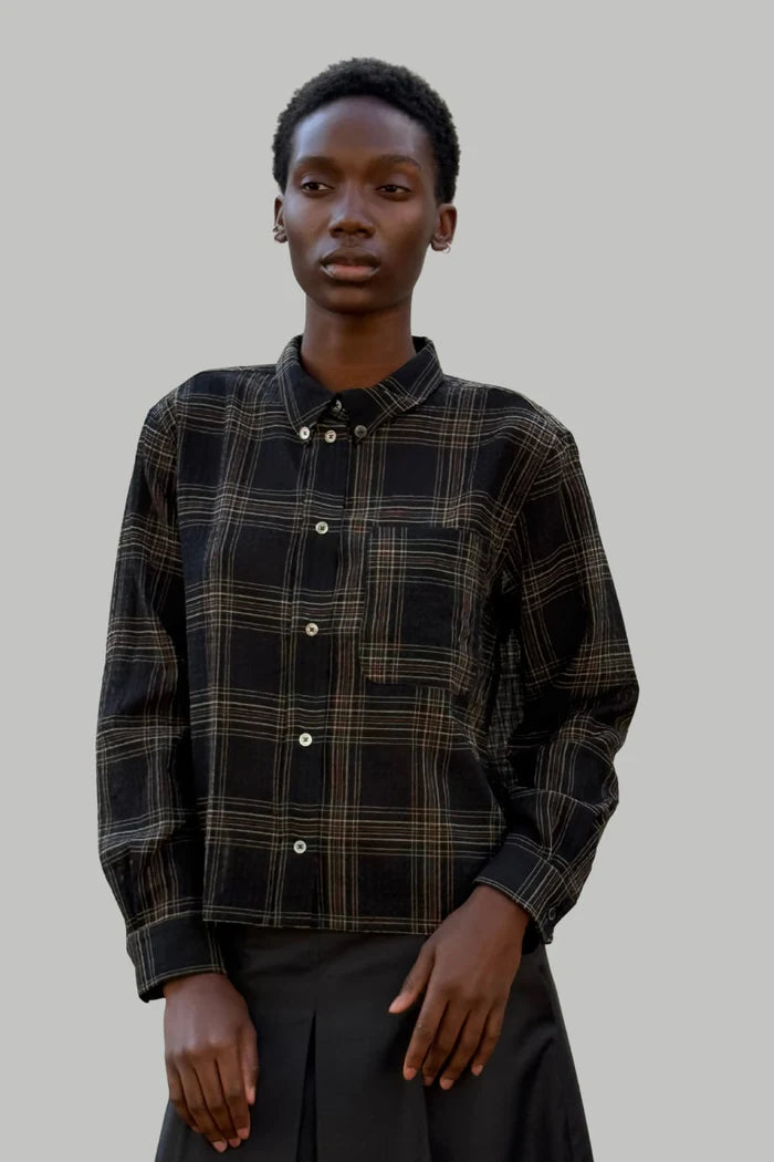 Flot cropped ternet skjorte fra Project AJ117. Pasformen er en smule boxy. Lavet i en dejlig uld/bomulds-blanding.