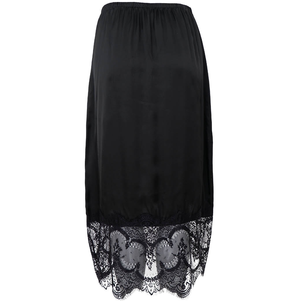 Flot løs nederdel fra Black Colour med fin bred blondekant forneden og slidser i siderne. Perfekt til både hverdag og fest.