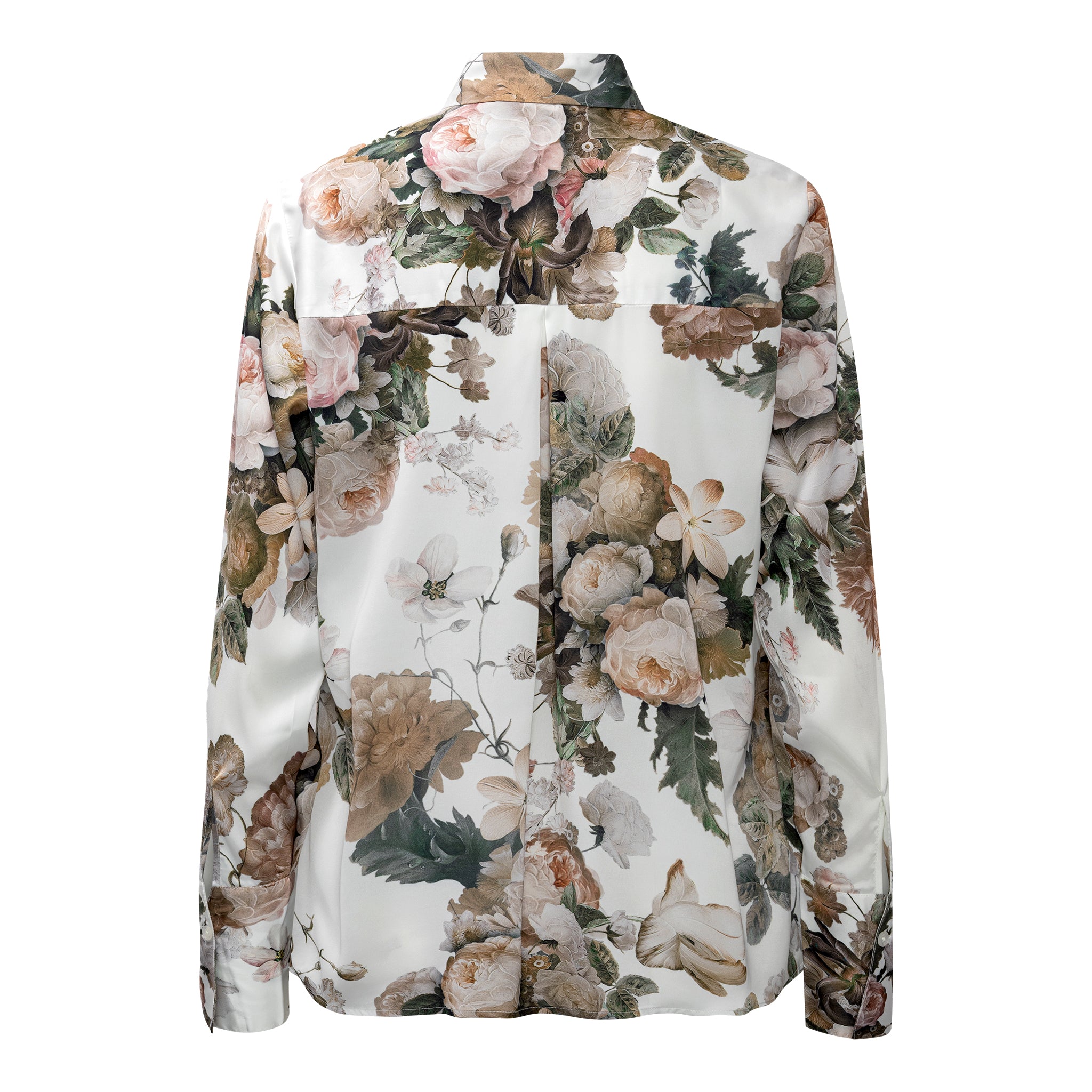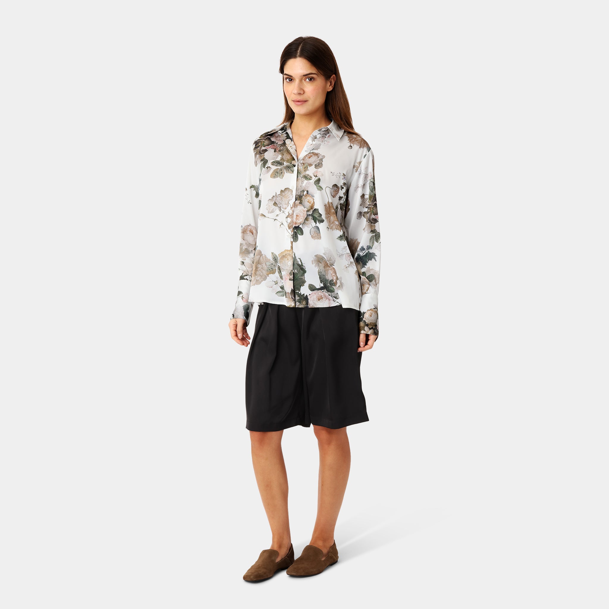 Super smuk og elegant satinskjorte fra Karmamia med flot blomsterprint. Med klassisk krave og manchetter. Kan bruges både til hverdag og fest.