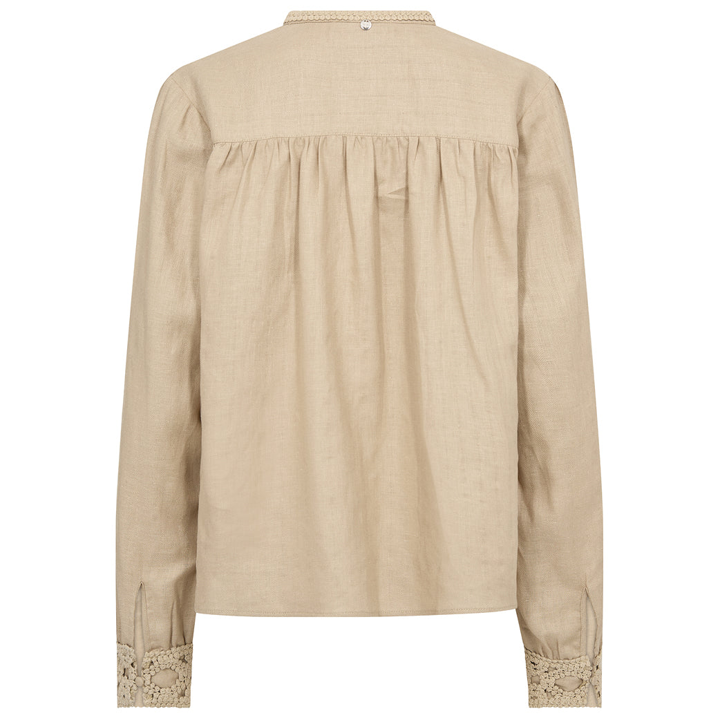 Flot bluse i hørblanding fra Mos Mosh med fine broderinger.