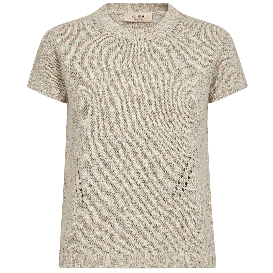 Skøn kortærmet strik fra Mos Mosh. Strikken har rund hals og ribkanter. Kan styles med det meste.