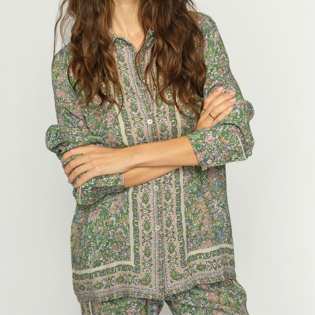 Elegant boho-skjorte fra Mos Mosh med det fineste mønster. Med krave og knaplukning.