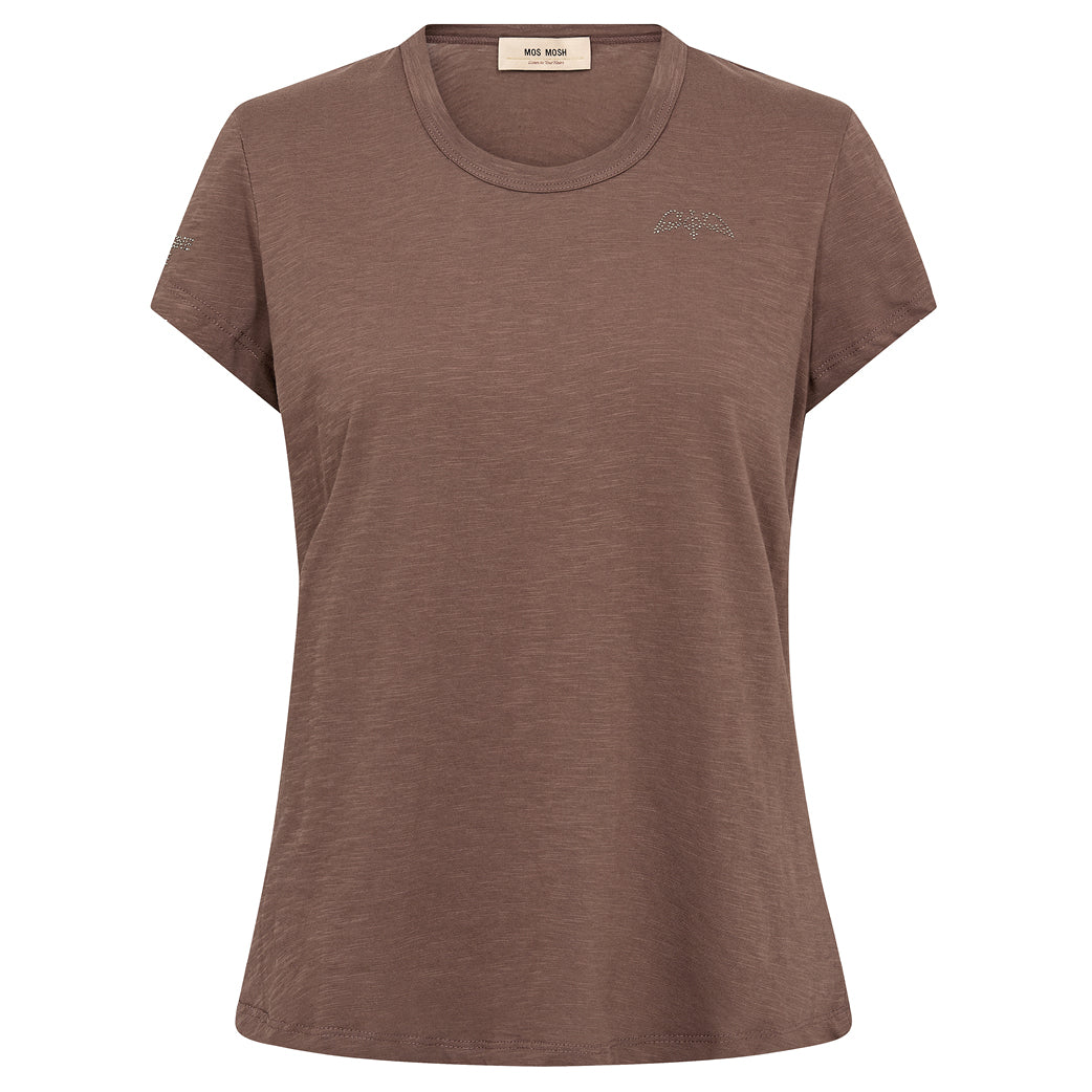 Flot enkel-t-shirt med små sten fra Mos Mosh. Fremstillet i en lækker bomuld. Med rund v-udskæring.