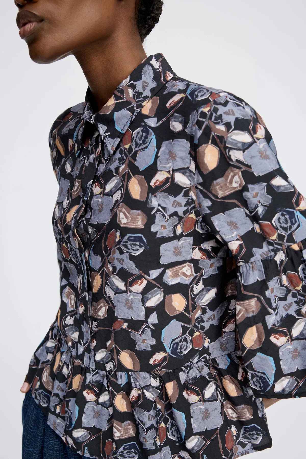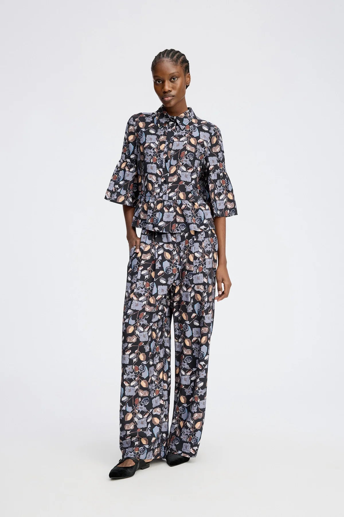 Smuk skjorte med flot all-over print fra Munthe. Skjorten er designet med trekvartlange ærmer og peplum-talje.