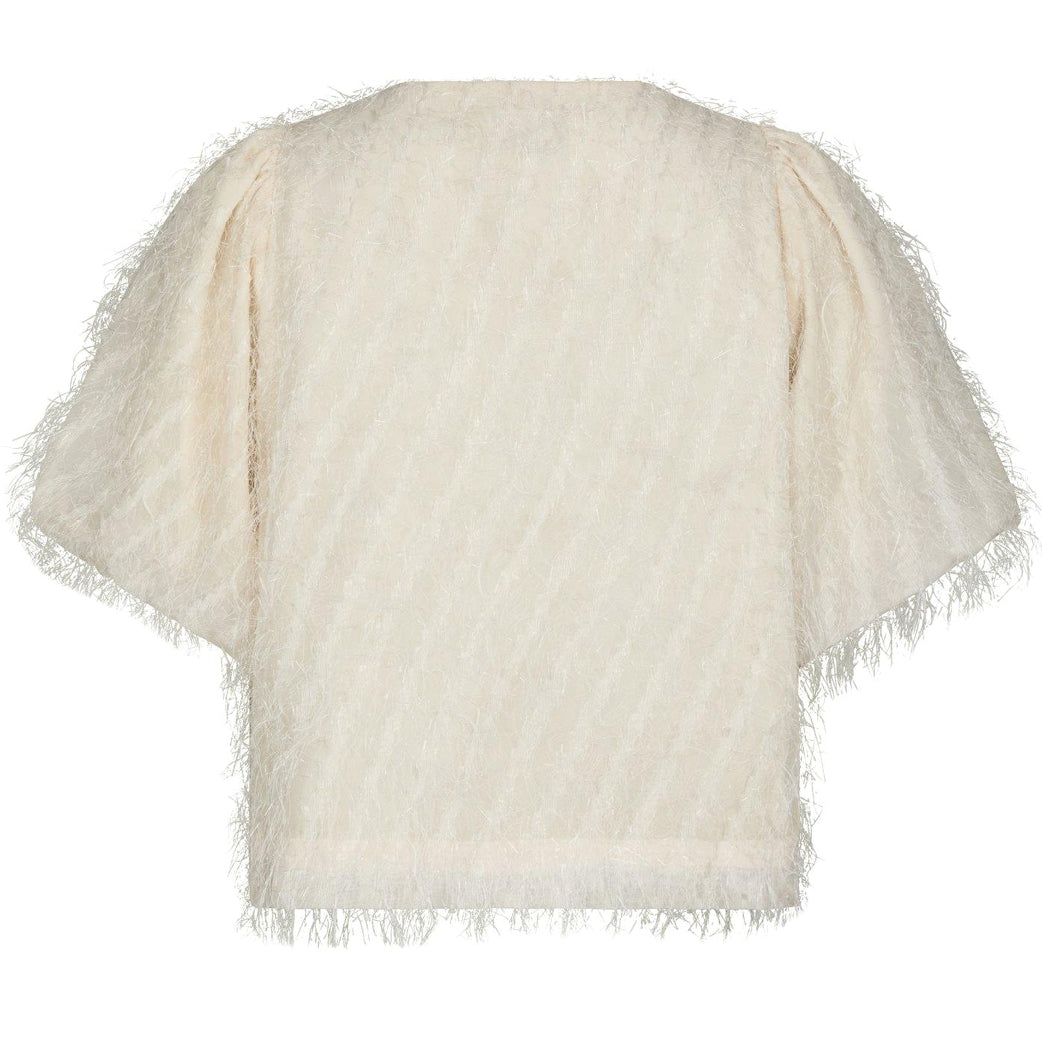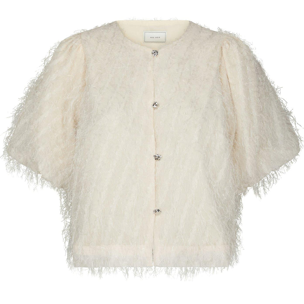 Smuk cremefarvet bluse fra Neo Noir med frynser og fine små knapper. Perfekt til både hverdag og fest.