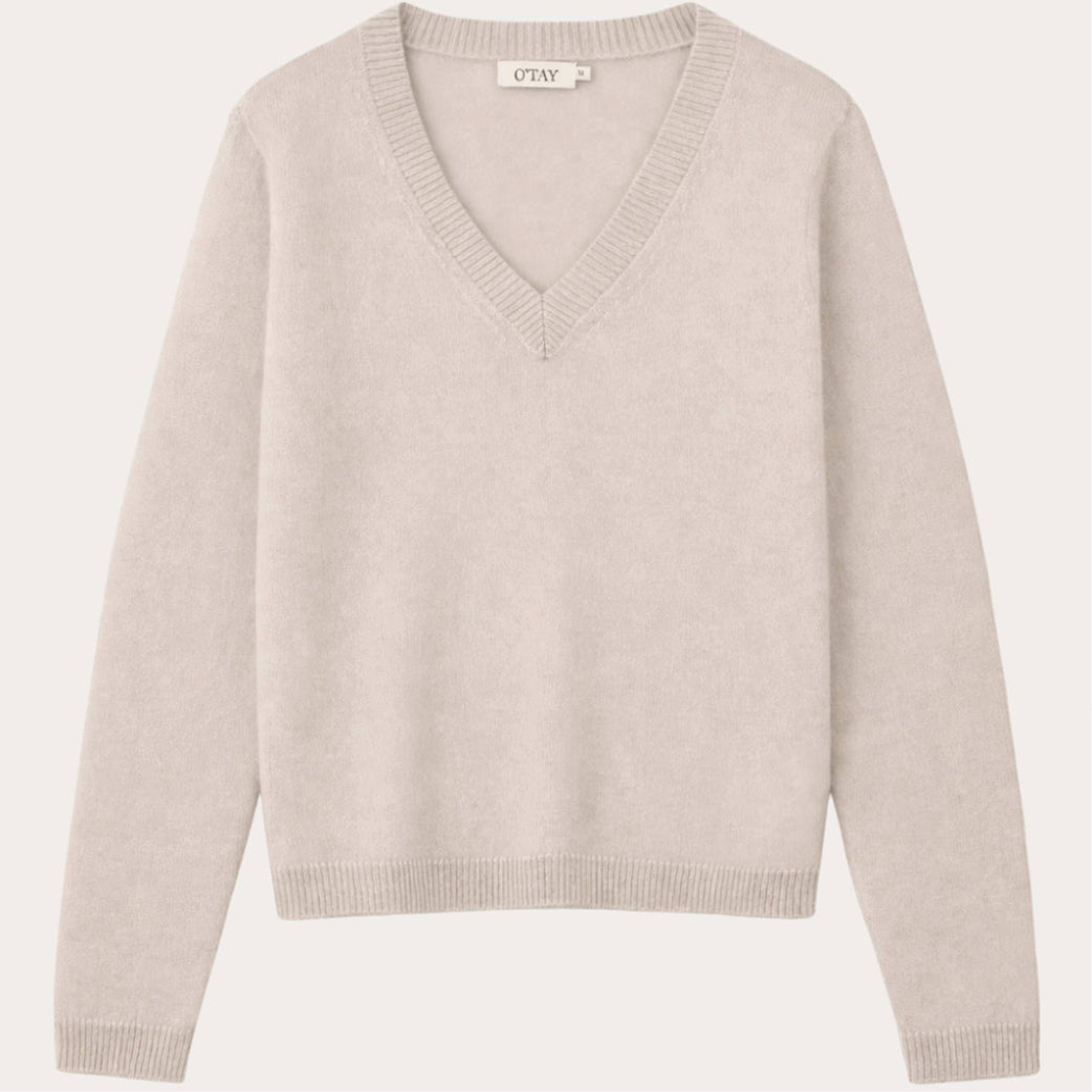 Skøn bluse fra O'tay i 100 % cashmere med v-udskæring. Det klassiske design gør det nemt at style blusen til enhver lejlighed og sikrer, at den forbliver moderne år efter år. Et musthave.
