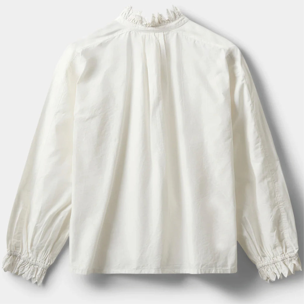 Smuk skjorte fra Sofie Schnoor med fine flæser ved kraven og ved ærmerne.