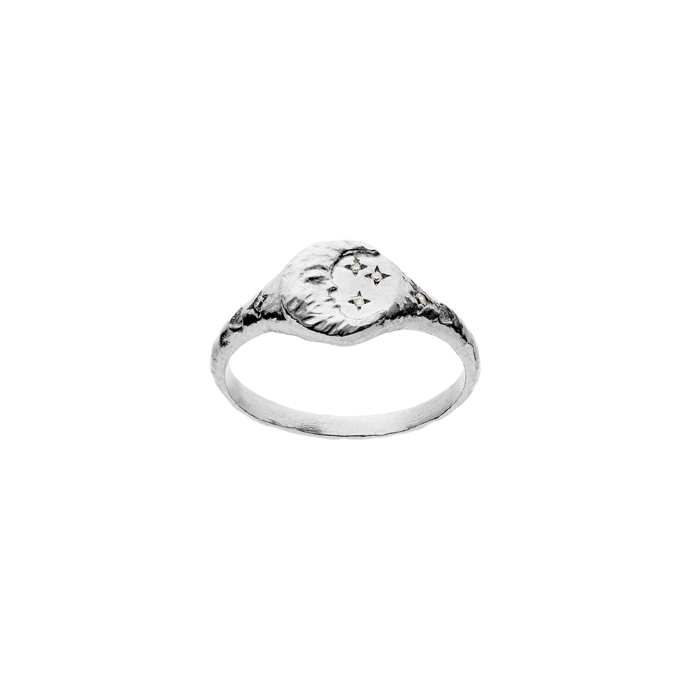 Smuk måne-ring fra Maanesten med hvide zirkoner.