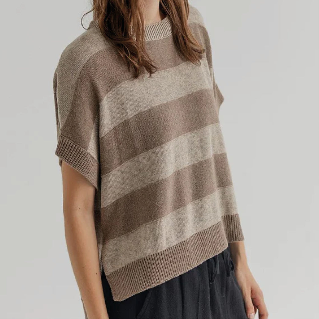 Skøn stribet strik fra Project Aj117 med korte ærmer og ribkanter.