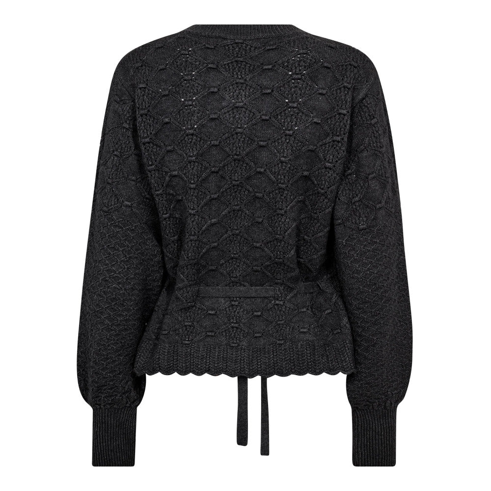 Smuk cardigan fra Co'couture med fint bindebånd og mønstret strik.