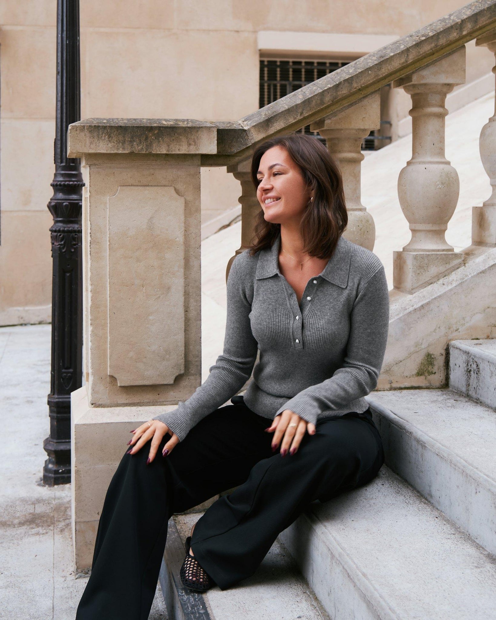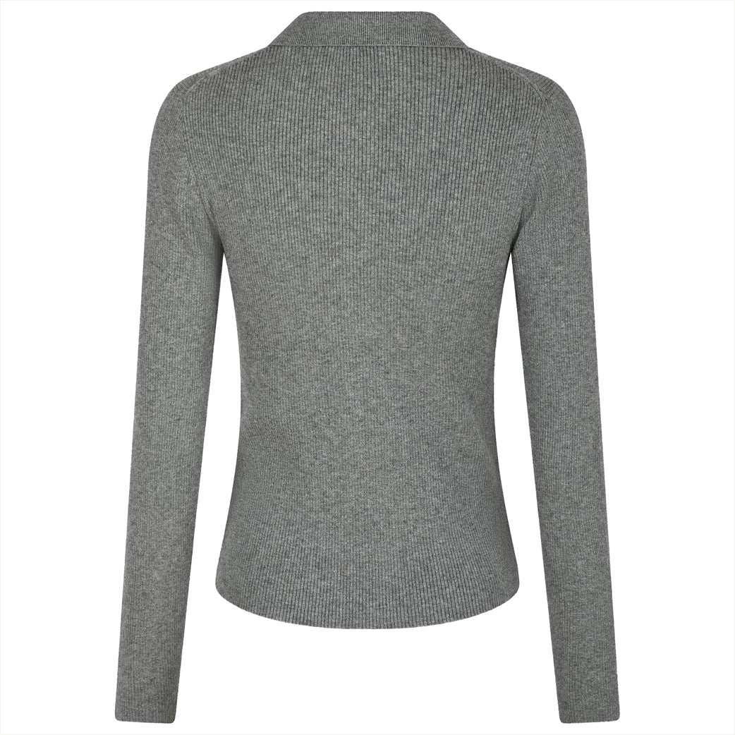 Flot enkel tætsiddende strik med lange ærmer fra Neo Noir. Med klassisk krave og fine knapper ved udskæringen.