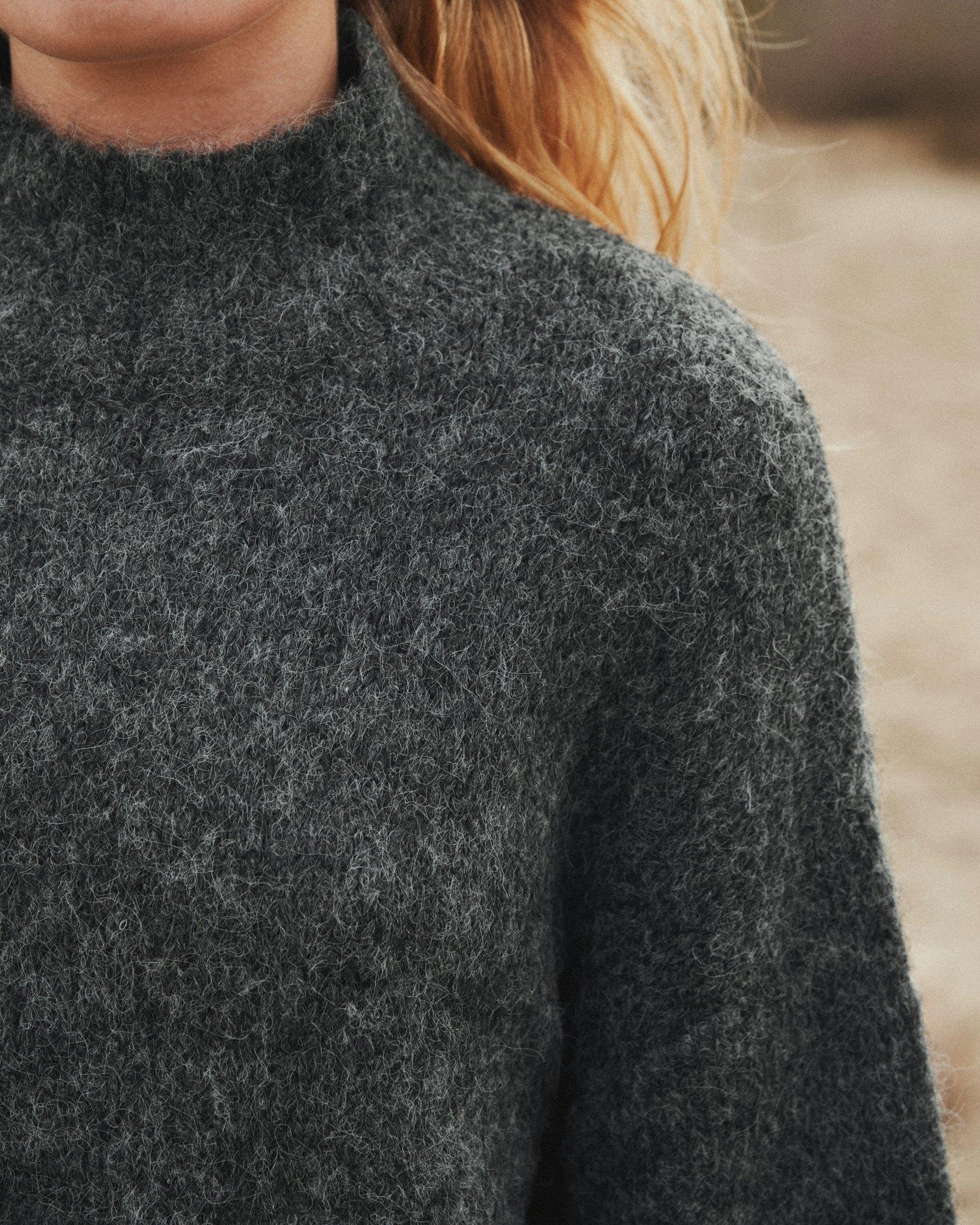 Dejlig fluffy strik fra Neo Noir med ribkanter. Modellen er iklædt en str. 36.