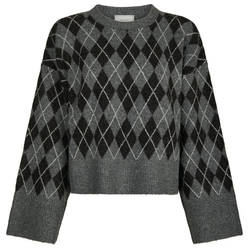 NEO NOIR Allestar Check Knit Cardigan Beige