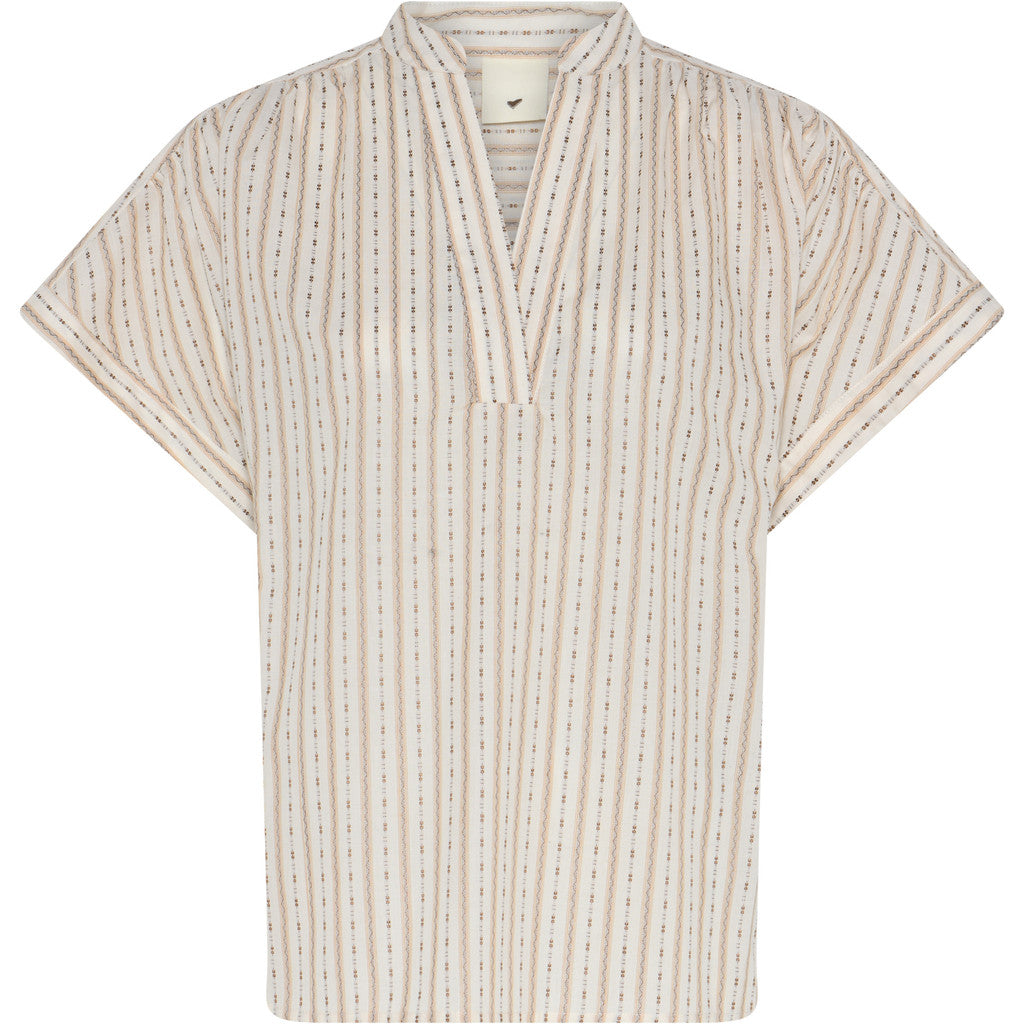 Skøn kortærmet stribet bluse fra Heartmade med v-udskæring. Perfekt forårs- og sommerstyle.
