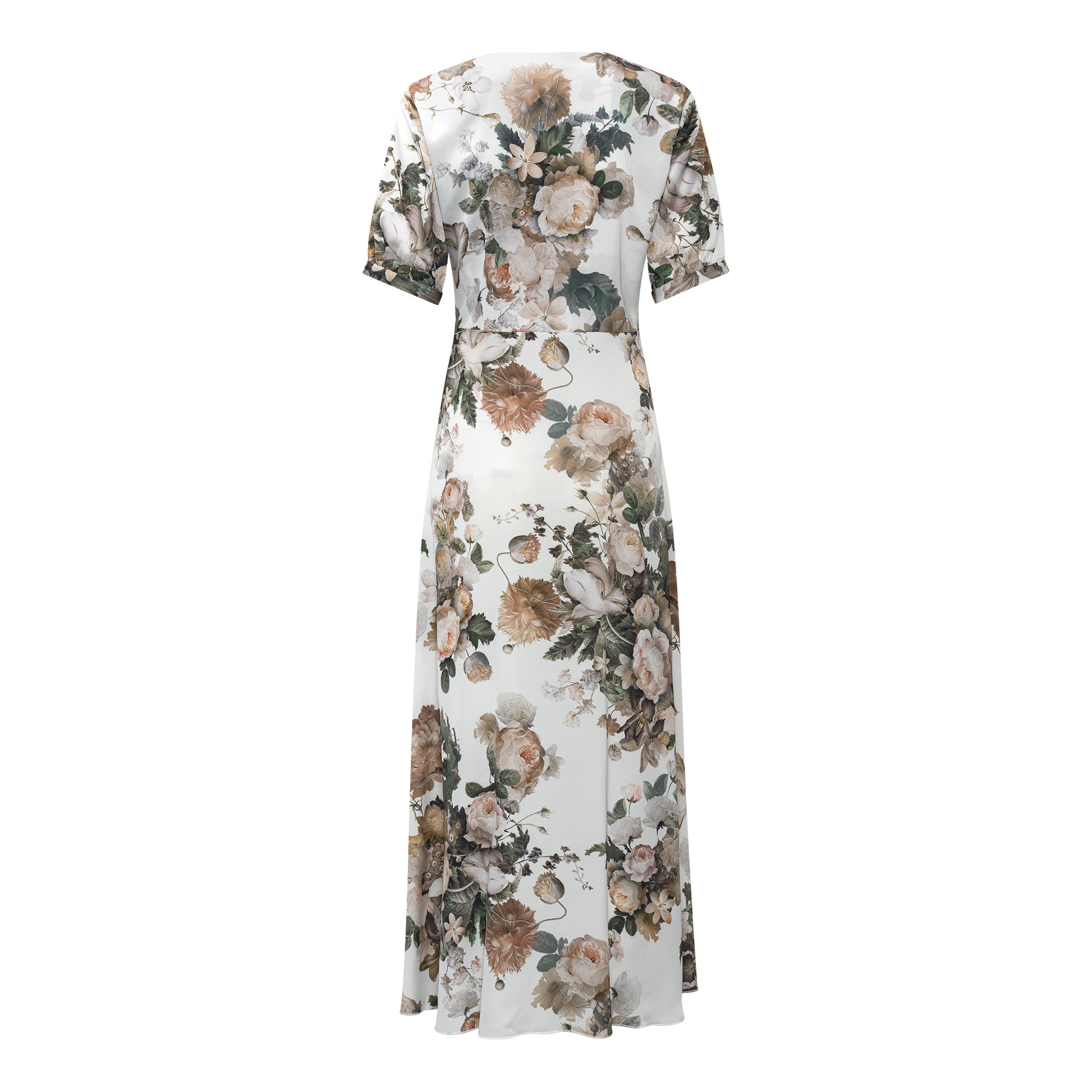 Smuk maxikjole fra Karmamia med v-udskæring og fin knudedetalje. Med smukt print all-over. Perfekt både til hverdag og fest.