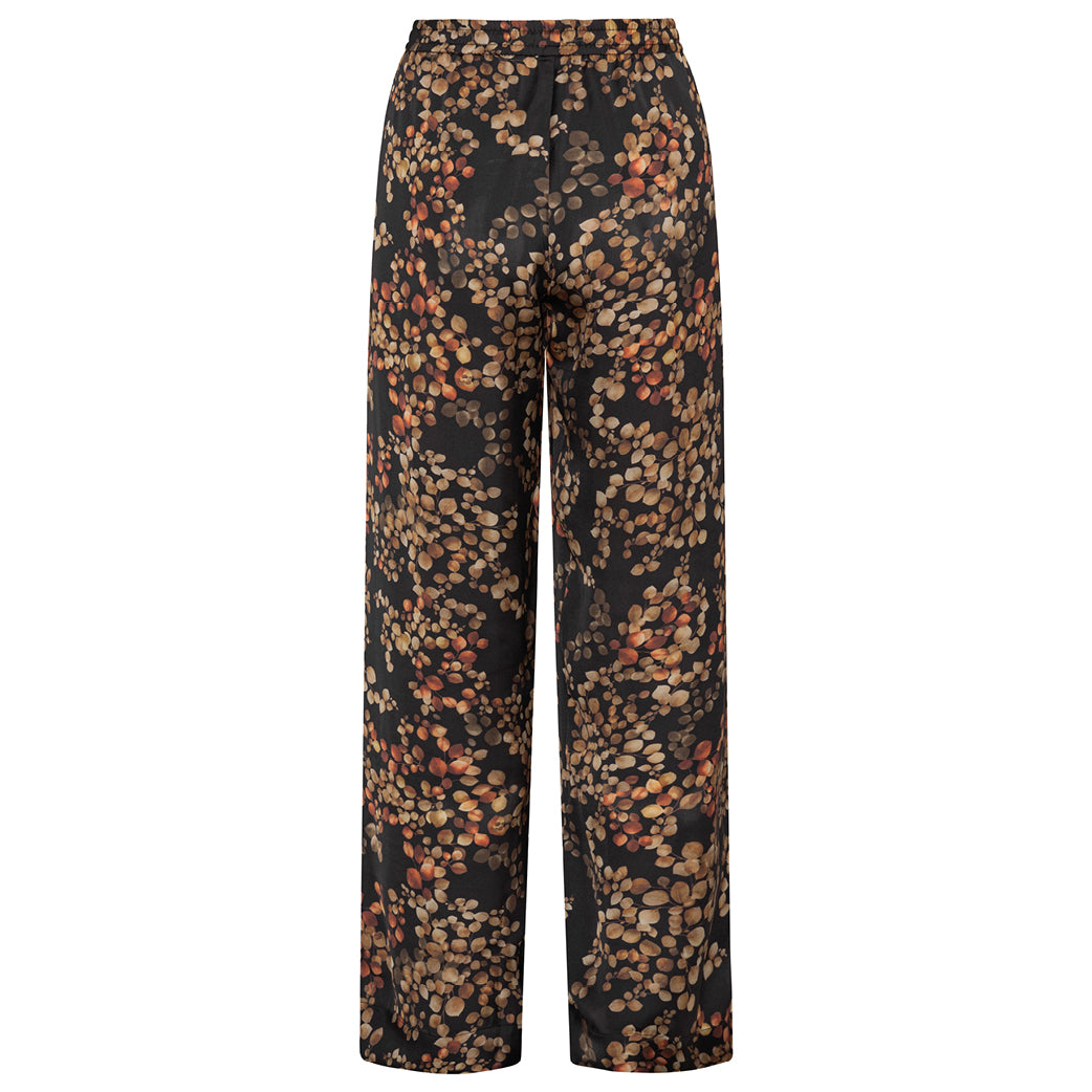 Smukke bukser fra Karmamia med det fineste all over print. Med lige ben og elastik i taljen med bindebånd. Perfekt både til hverdag og fest.
