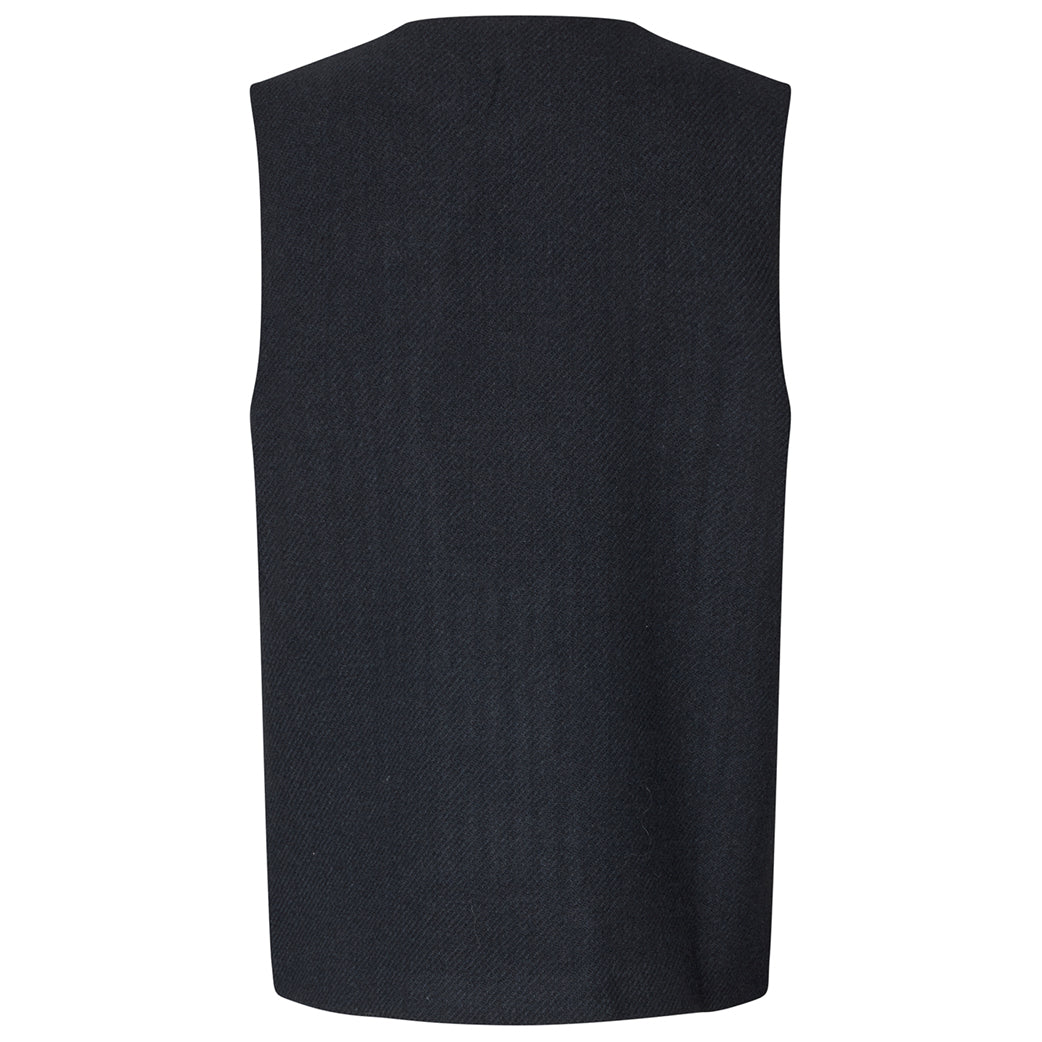 Elegant navy vest fra Lollys Laundry med v-udskæring, lommer og fine guldknapper.